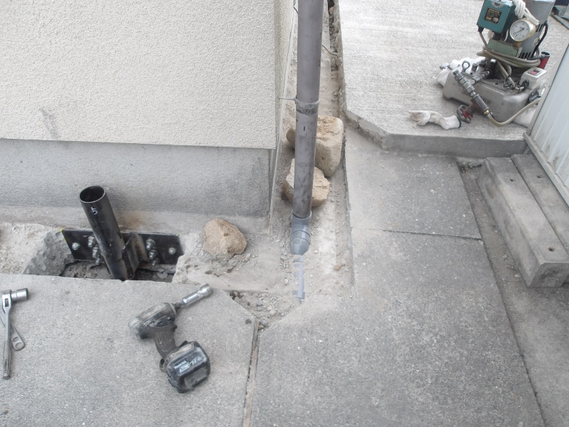 基礎補強工事 地盤沈下による家の傾き防止工事 |