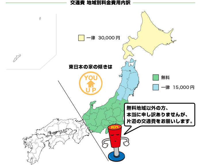 ※離島の場合は、属する県の交通費 + 片道フェリー代金をご請求させていただきます。